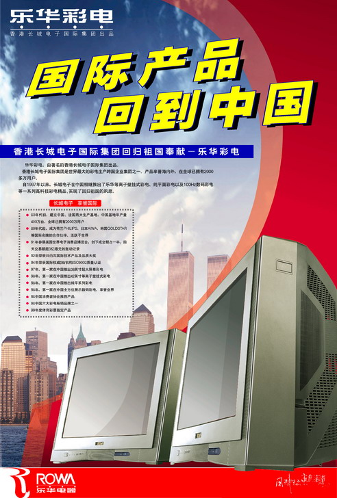 由于香港长城电子集团的背景,这表明在彩电中下端市场,乐华有机会凭籍企业的国际化形象,建立起一个“国际化产品”的定位,从而在国内品牌阵营中占得较为优势得位置。甚至,最终成为彩电中的强势品牌。也就是说,乐华可以借助长城电子国际化的企业背景,确立“国际产品”的定位,不仅使产品获得品质保证感,还为品牌附加“洋化”的感性利益,从而值得人们购买。