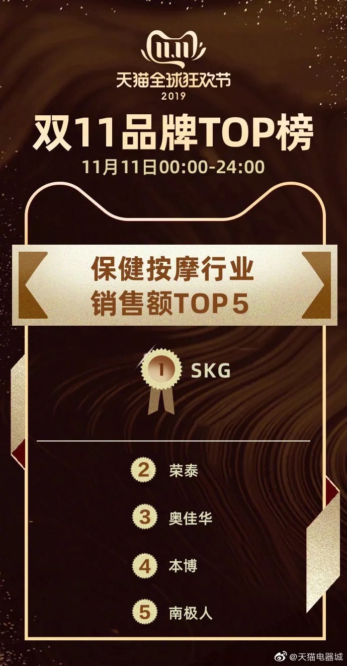 (数据来源:天猫2019年双11保健按摩行业排名)