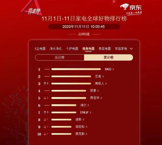 SKG双11完美收官,销售突破1个亿,按摩类目绝对第一,大个护类目杀进TOP3,仅次于戴森,飞利浦。爆款单品销量8万台,佳琦直播爆卖4.5万台。
