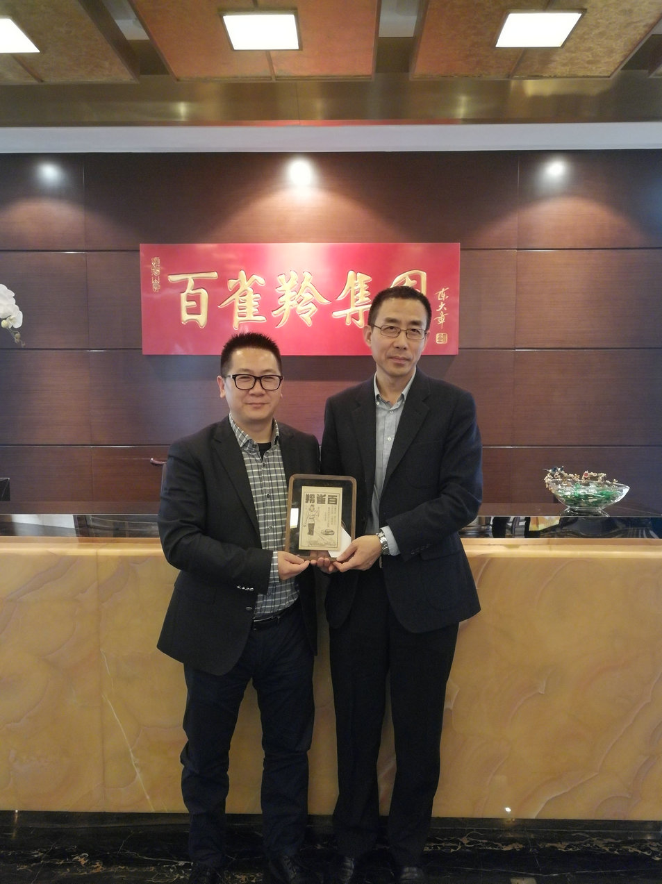 百雀羚董事长(左)与成美战略定位咨询公司董事长耿一诚(右)